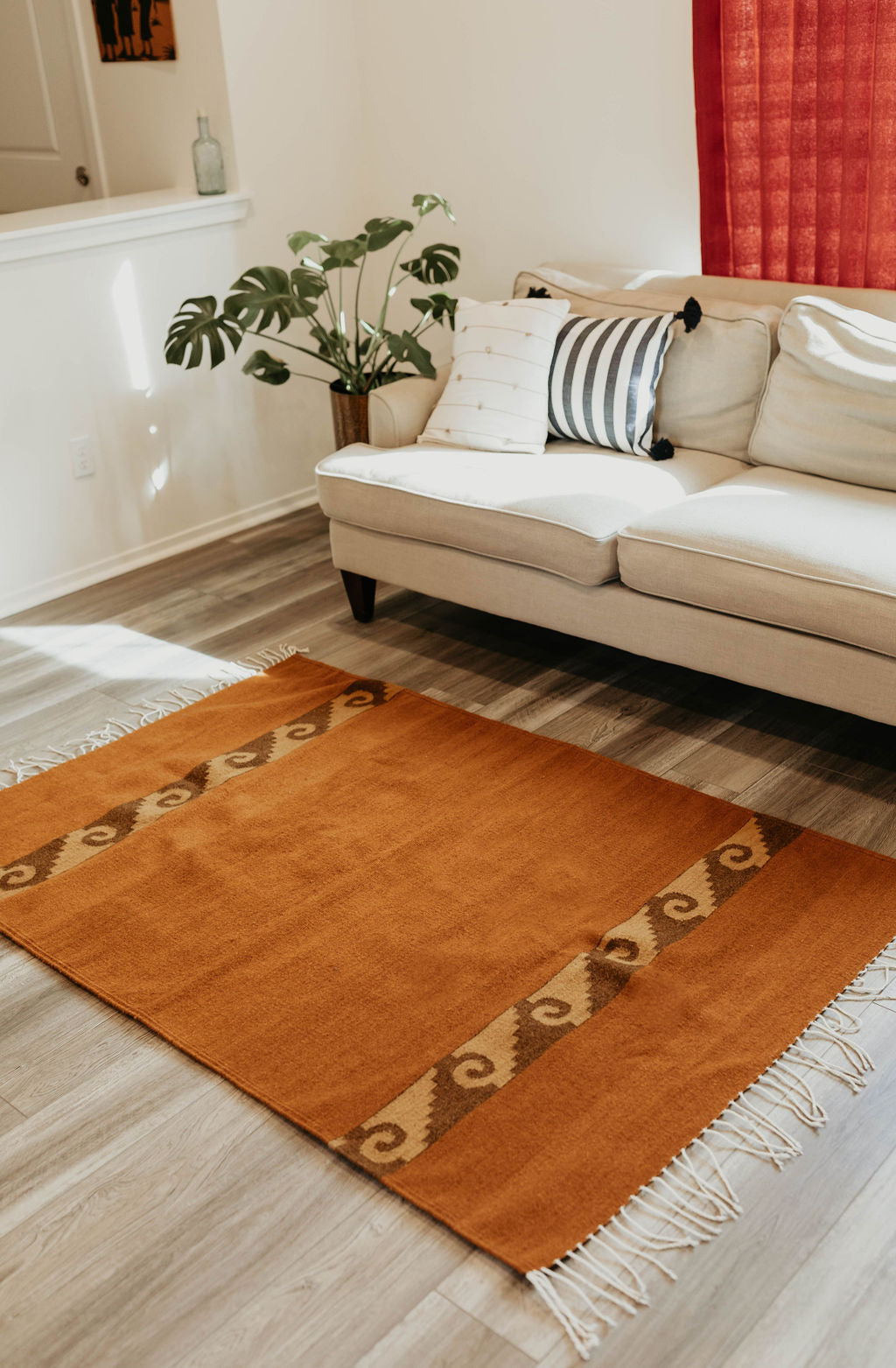 Tierra Rug is handcrafted by Doña Macedonia and her family using centuries-old techniques and sustainable processes that have been passed down for generations. It makes a beautiful addition to any bedroom, kitchen, living room, or doorway and is a piece that you will treasure for years to come.
