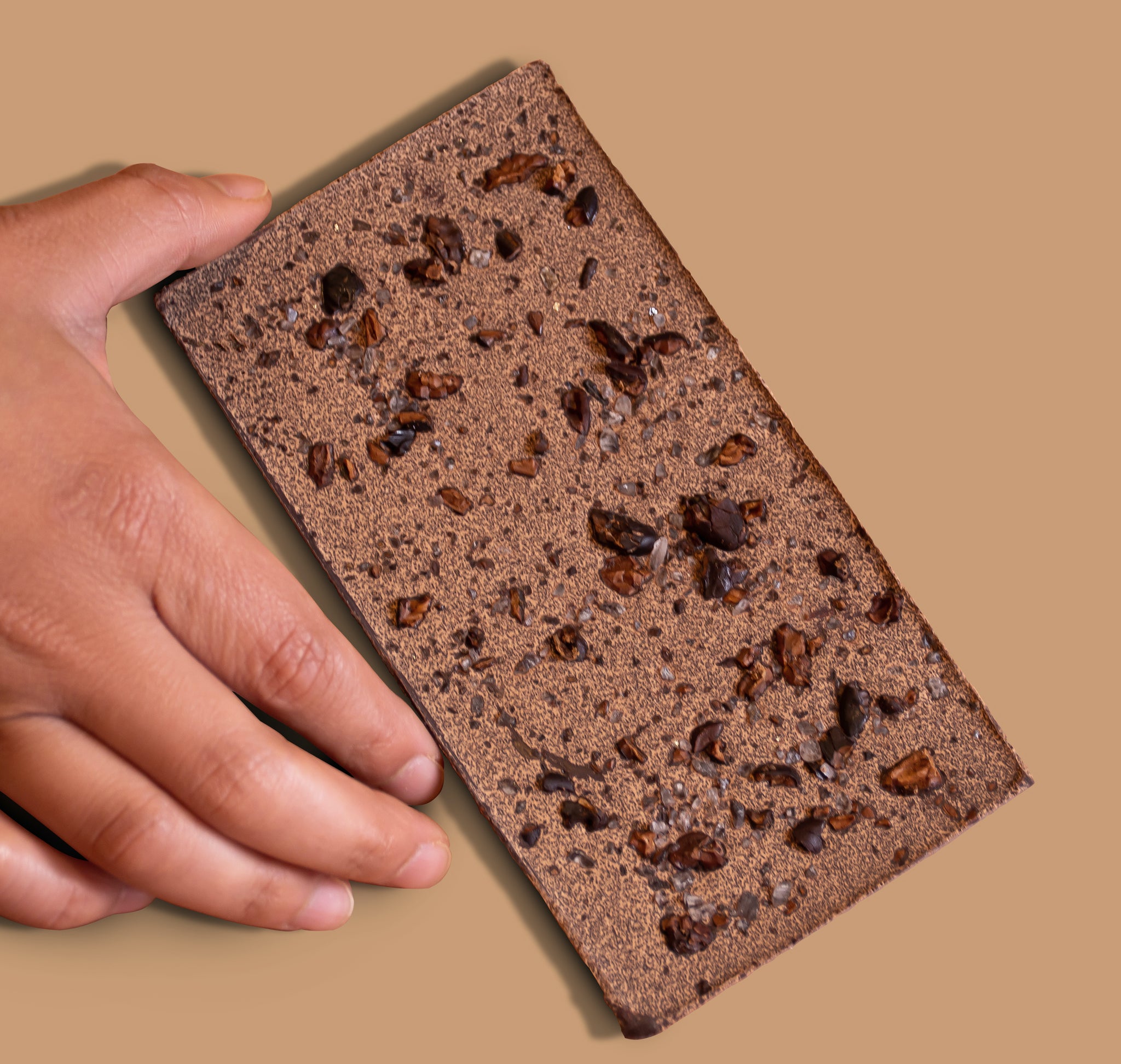 Single Origin Artisanal Chocolate Bar with Cacao Nibs and Sea Salt:
