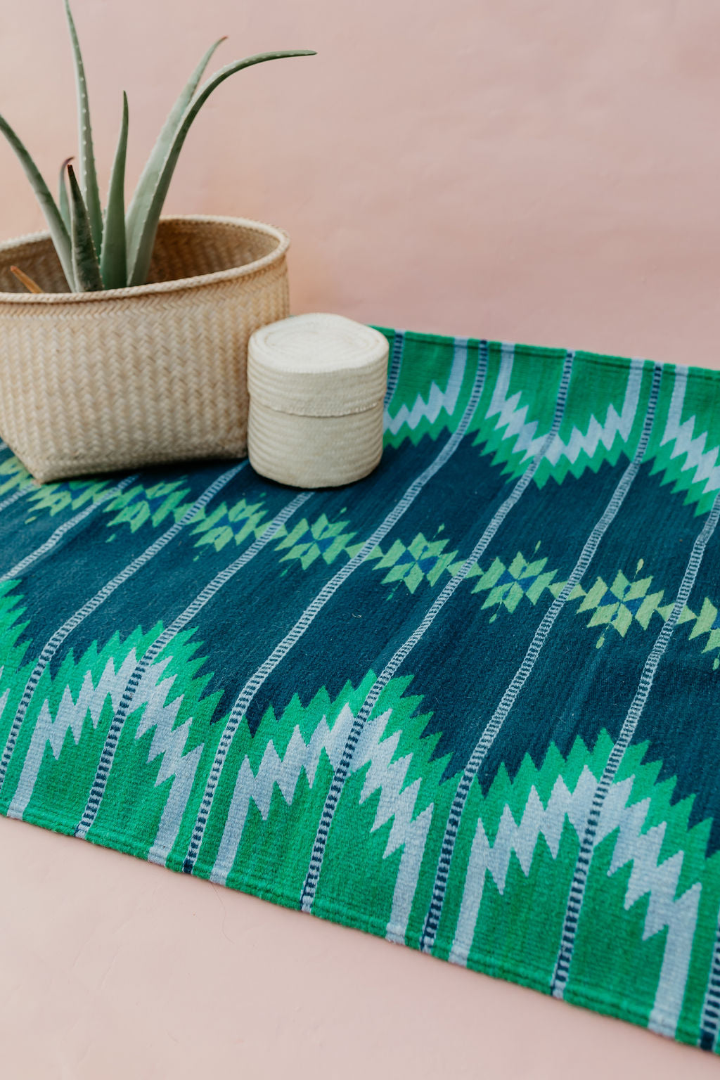 Pyramid Rug is handcrafted by Doña Macedonia and her family using centuries-old techniques and sustainable processes that have been passed down for generations. It makes a beautiful addition to any bedroom, kitchen, living room, or doorway and is a piece that you will treasure for years to come.